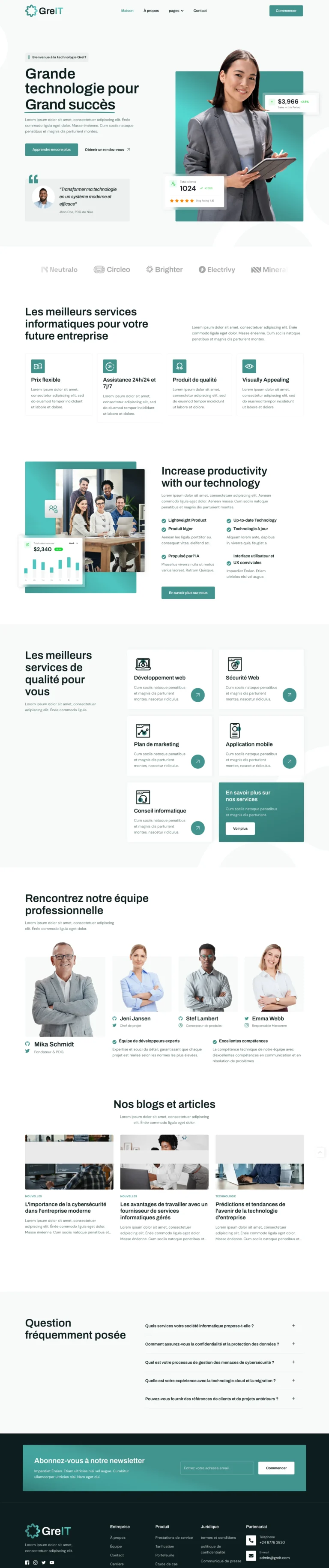 Chaque bouton et chaque image est placé pour guider le visiteur vers l'action.